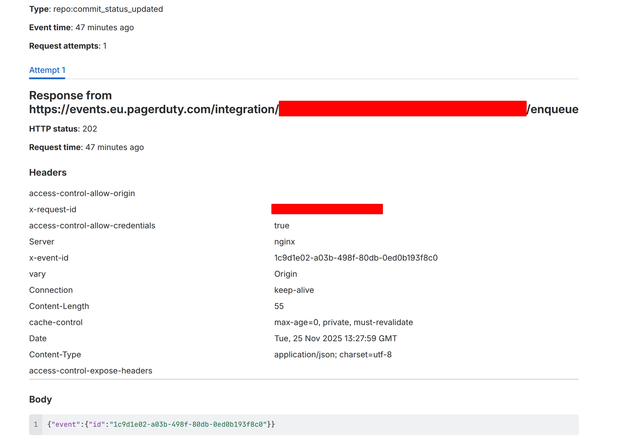 On build updates the webhook is received by pagerduty with HTTP status 202.